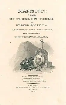Marmion: A Tale of Flodden Field is a historical romance in verse of 16th-century Scotland and England by Sir Walter Scott, published in 1808. Consisting of six cantos, each with an introductory epistle, and copious antiquarian notes, it concludes with the Battle of Flodden in 1513.[1]