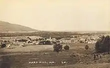 The town of Mars Hill is named for Hezekiah Mars, who camped for three years at the base of Mars Hill Mountain. In 1834, the first industry was cutting timber, particularly trees for masts. Farming later became important.[3] Following the end of the Aroostook War in 1839, a boundary line between Maine and New Brunswick was cleared and iron markers were put in place three years later. The first mill opened at Rocky Brook in 1856. In 1860, the first school was established for the community of Mars Hill. Further development of the community was delayed until after the American Civil War. The Bangor and Aroostook Railroad arrived in 1892, allowing shipment of local produce to distant markets.