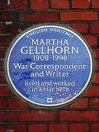 - ↑ Walker, Amy (3 September 2019). "Blue plaque for US war correspondent Martha Gellhorn". The Guardian. Retrieved 1 November 2023.