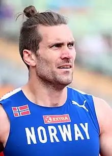 Martin Roe (born 1 April 1992) is a Norwegian athlete, specializing in combined events (decathlon and heptathlon).[3] On April 26, 2018, he broke the Norwegian record with 8228 points, in the combined events meet in Firenze. In 2017, he won the men's heptathlon competition at the Norwegian Indoor Championships in Sandnes, Norway, with a new personal record of 5,690, beating six personal bests in the process.[4] On July 2, he achieved a new outdoor personal record of 8,144 points in the decathlon – his first time crossing the barrier of 8,000 points – to deliver a win for Norway at a European Combined Events Team Championships Second League event taking place in Monzón, Spain.[5][6] In August, he represented his country at the 2017 World Championships, finishing twelfth with 8,040 points.[7]