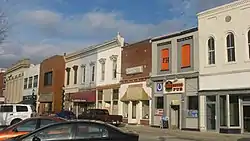 Martinsville Commercial Historic District is a national historic district located at Martinsville, Morgan County, Indiana. The district encompasses 75 contributing buildings and 1 contributing object in the central business district of Martinsville. It developed between about 1847 and 1947, and includes notable examples of Italianate, Classical Revival, and Tudor Revival style architecture. Located in the district are the separately listed Morgan County Courthouse and Blackstone House and Martinsville Telephone Company Building. Other notable buildings are the Martinsville Public Library (1906, 1990), Martinsville City Hall (1917), Martinsville Post Office (1935, 1974), Pitkin Building (c. 1900), Barskin's Department Store (1922), Indiana Theater (1914, 1927, 1939), Steven's House / Building (c. 1847, c. 1915), Hale Building (c. 1860, 1917), Interurban Station (1902, c. 1956), Union Block (1866), and First Christian Church (1891) and Annex (1927).[2]
