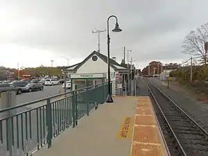 Mastic–Shirley station was built as a replacement for the former Mastic station (originally Forge station) built in 1882 and located 7,010 feet (2.14 km) east on Mastic Road. Service for the Mastic–Shirley train station began July 7, 1960.[2][3] The now-unused station house at the original station was torn down a month later.[4] When Center Moriches station was eliminated by the LIRR on March 16, 1998, Mastic–Shirley station was one of two stations recommended for use as a substitute by the patrons of the now-closed station. The other was Speonk station.