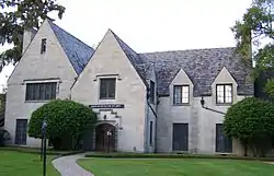 The Masur Museum of Art was built as a private residence in 1929.[4] A lumberman by the name of Clarence Edward Slagle had the modified Tudor estate built for his wife Mabel.[4] The Indiana limestone and Pennsylvania blue slate used to build the home were transported on various waterways to the scenic Ouachita River, which runs behind the estate.[4] The home was given the name Grey Gables by the Slagles.[4] Originally the grounds included an English style rose garden and a lawn extending down to the river.[4] When the Army Corps of Engineers built the levee system in the 1930s, the home’s carriage house was moved behind the new levee, but only had to be moved twenty feet.[4]
