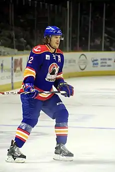 The son of a Canadian father, Mat Clark was born in Lakewood, Colorado, before he moved to Milton, Ontario with his family when he was four.[1] Prior to turning professional, Clark played major junior hockey in the Ontario Hockey League with the Brampton Battalion. After two seasons with the Battalion, and showing potential as a physical defensive defenseman by being selected as the best body checker and defensive defenseman in the Eastern Conference poll, he was signed to a three-year entry-level contract with the Anaheim Ducks on March 31, 2010.[2] He immediately made his professional debut at the end of the 2009–10 season with affiliate, the Manitoba Moose against the Peoria Rivermen on April 10, 2010.