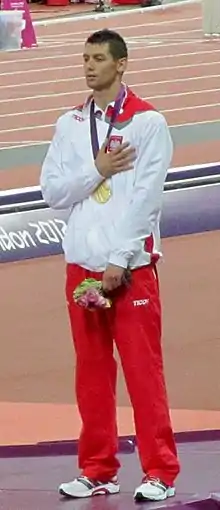 Michalski's first major international success came at the 2011 IPC Athletics World Championships in Christchurch, New Zealand. There he won both the 100m and 200m gold in the T12 category.[3] The next year he competed in the 2012 IPC Athletics European Championships in Stadskanaal, racing in the 100m – T12. In the final he beat Russia's Fedor Trikolich to take the European title. Two months later he competed at the 2012 Summer Paralympics in London. In the 100m Michalski progressed through to the finals, but was beaten into second place by Trikoli.[4] In the 200m he was placed into qualifier Heat 3 alongside Trikoli. In the heat he recorded a season's best of 22.13 to go through to the semi-finals in first place.[5] Trikoli also qualified after recording a personal best, going through to the semis as one of the fastest losers. The two rivals met again in the semifinals in heat 2. Michalski recorded another season's beat with an improved time of 22.09, but this was not enough to beat Trikoli who produced another personal best to finish in 21.94. Michalski's time saw him qualify through to the final in the only fastest loser's position at the expense of Yang Yuqing of China, who recorded a time of 22.30 in the first heat. The final, held on 8 September, saw Michalski run the 200m in a time of 21.56 setting a new world record, leaving Trikoli with the silver.[6]