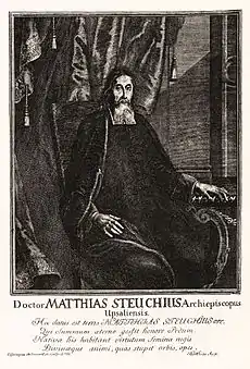 Mathias Steuchius (Swedish pronunciation: ['stø:kɪɵs];[1] 26 October 1644 – 2 August 1730) was Bishop of the Diocese of Lund, 1694 to 1714 and Archbishop of Uppsala in the Swedish Church from 1714 to his death.[1]