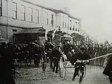 The station was opened on 28 October 1888 as Matsuyama Station (松山駅). It was Matsuyama's first central train station, preceding the JR Matsuyama Station by four decades, and was on the first railway in Shikoku and the third private railway in Japan.[2] The first Iyotetsu line ran between the City Station and the port of Mitsugahama (now called Mitsuhama), with an interim stop at Komachi. It was renamed Togawa Station (外側駅) on 20 July 1889, and back to "Matsuyama Station" on 1 June 1902. The station renamed to its present name on 1 March 1927 when its name was usurped by the Japanese Government Railways' Matsuyama Station.[3]