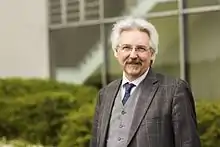 In 2016, he presented a research study on the cultural implications of migration: Ankommen in der deutschen Lebenswelt (Arrival in the German World).[18] The study is based on previous research such as Minderheiten- und Fremdenfreundlichkeit am Wiederbeginn europäischer Staatlichkeit (Welcoming attitudes towards minorities and foreigners at the re-inception of European statehood[19]), Der Fremde als Bereicherung (The Foreigner as Enrichment)[20] and Minderheiten als Mehrwert (Minorities as Value Added)[21] – all of these studies having been conducted in the framework of the tri-national Görlitz-Zgorzelec-Zhořelec Institute for Advanced Study, Collegium Pontes. In 2002-2009 the latter researched into the fundamental issues of social cohesion in Europe under the common patronage of the German, Polish and Czech Foreign Ministers.
