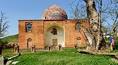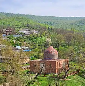 Mausoleum of Sheikh Juneyd (Azerbaijani: Şeyx Cüneyd türbəsi) – is located in Hazra village of Qusar Rayon. Hazra village is not far from Azerbaijan’s border with Dagestan. From history of battle period between the Shirvanshahs and Ardabil sheikhs it is known, that Shaykh Junayd - grandfather of Shah Ismail I – perished in the battlefield with Khalilullah’s army in 1456 and was buried there. Construction of the mausoleum on his grave was carried out significantly later. A ligature in the northern façade of the complex evidences about it. Investigation of the building shows that a part of the building, where the construction ligature is located now, has been attached to the building of the mausoleum later. Then it should be acknowledged that this ligature has been brought here from the main building during construction of the annex.[1][2][3]