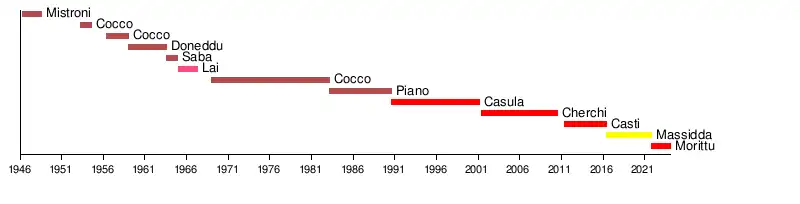 | Pietro Morittu | 13 October 2021 | Incumbent | Democratic Party | |