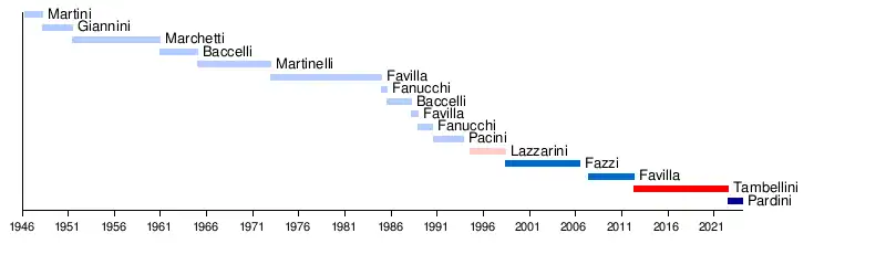 | 15 | Gino Baldassarri[3] | 1944 | 1946 | Italian Communist Party | |||