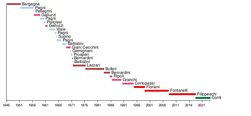 | 15 | Italo Bargagna[2] | 1944 | 1946 | Italian Communist Party | |||