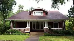 The J. M. McClintock House is a historic house at 43 Magnolia Street in Marianna, Arkansas. It is a 1+1⁄2-story wood-frame structure, designed by Charles L. Thompson and built in 1912, whose Craftsman/Bungalow styling is in marked contrast to the W.S. McClintock House, a Colonial Revival structure designed by Thompson for another member of the McClintock family and built the same year. This house has the broad sweeping roof line with exposed rafters covering a porch supported by brick piers and paired wooden box posts on either side of the centered stair. A dormer with clipped-gable roof is centered above the entry.[2]