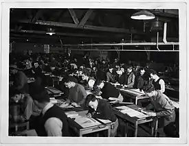 Dawson College was opened in 1945 to accommodate the greatly increased enrollment due to the return of students from the armed services and was housed at the R.C.A.F base at St-Jean, Quebec. All first year science and engineering students were transferred there. The number of students enrolled, mainly veterans, reached a peak of 1687 in January 1947. The College was closed in 1950. Dawson College was administered by a Vice-Principal, Dawson College and by various other McGill staff members who undertook duties such as that of Assistant Bursar and Secretary.[7]