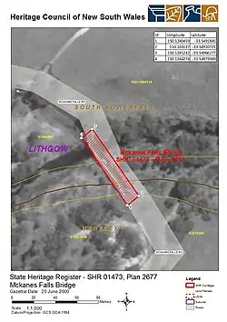 Text is licensed by State of New South Wales (Department of Planning and Environment) under CC-BY 4.0 licence. - ↑ "McKanes Bridge, Cox's River, Lithgow, 1893-". Engineers Australia. Retrieved 3 May 2020.