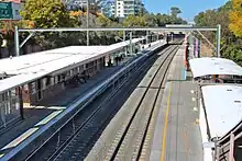 Meadowbank railway station is on the Main Northern railway line. Meadowbank has two side platforms. The station is served by two trains per hour each way, with additional trains on weekday peak hours. The station is within walking distance of Meadowbank ferry wharf served by Sydney to Parramatta ferries.