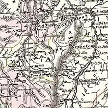 The territory of the Mediomatrici comprised the upper basins of the rivers Maas, Moselle and Saar, and extended eastwards as far as the Rhine in the mid-first century BC.[9][10] Ptolemy places them south of the Treviri, between the Remi and the Leuci.[11]