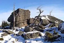The Medvědí skála (German: Bärenstein, also Bernsteinberg) is a 924 m high mountain in the Ore Mountains in the Czech Republic.