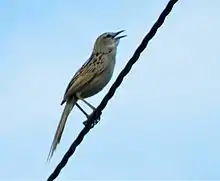 The striated grassbird (Megalurus palustris) is an "Old World warbler" species in the family Locustellidae. It was formerly placed in the family Sylviidae. It is now the only species placed in the genus Megalurus.