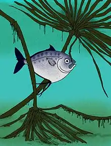 Mene oblonga is a species of ray-finned fish that first appeared in the Monte Bolca Lagerstatten during the Lutetian epoch of the Eocene. For a menid, it has a very shallow body, especially in comparison with the sympatric Mene rhombea. Its fossils are very rare in Monte Bolca. A single fossil from the early Oligocene, referred to as "Mene oblonga var. pusilla," was found in Chiavon, Italy.