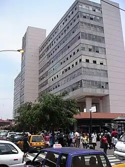 The building is made up of a basement that occupies the entire block, with a commercial perimeter ring. The basement is divided into two sectors differentiated by half a level and connected by ramps. A building rests on it. It has two truck entrance ramps to the basement.[1]