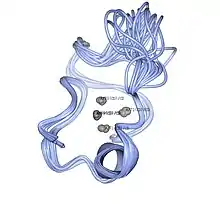 - ↑ Peterson CW, Narula SS, Armitage IM (January 1996). "3D solution structure of copper and silver-substituted yeast metallothioneins". FEBS Letters. 379 (1): 85–93. doi:10.1016/0014-5793(95)01492-6. PMID 8566237.