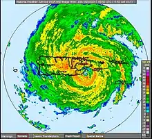 Final radar image of Maria from the San Juan radar at 09:50 UTC (5:50 a.m local time) on September 20, before it was destroyed