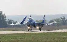 A MiG-29M on display. The MiG-29M was developed into a naval version, the MiG-29K.