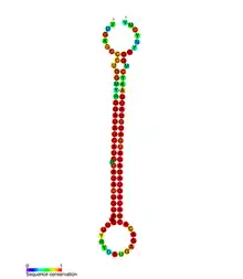 miR-144 is a family of microRNA precursors found in mammals, including humans. The ~22 nucleotide mature miRNA sequence is excised from the precursor hairpin by the enzyme Dicer.[1] In humans, miR-144 has been characterised as a "common miRNA signature"[2] of a number of different tumours.