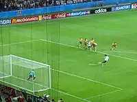 Ballack converting a penalty for Germany at the 2005 Confederations Cup in a match against Australia
