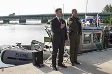 Fisher (right) and Kevin McAleenan, CBP acting deputy commissioner, attend dedication ceremony for CBP Vessel Brian A. Terry in 2013