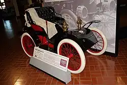 The Bloods small prototype car, was a two-passenger runabout with a wheelbase of just 48 in., a steering lever and an air-cooled, single-cylinder engine that delivered 3.5 horsepower. For production, a longer frame with a wheelbase of 54 in. was used. It was marketed as the Model A runabout, priced at $450 (equivalent to $14,657 in 2022) and weighing only 360 pounds. About 100 cars were built by 1904.[2]