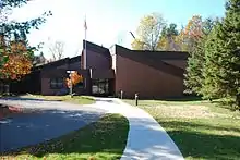 The Michigan Iron Industry Museum, a branch facility of the Michigan Historical Center, is a community museum serving the heritage of the Marquette Iron Range on Michigan's Upper Peninsula. The museum is located in Negaunee, a town built atop the geological strata of the iron range near Marquette.[1] Until recently, Negaunee was a one-industry town that centered on the mining of iron ore. The Negaunee region served as the center of U.S. iron ore production from about 1880 until approximately 1900, when this role was taken over by iron mines on Minnesota's Mesabi Iron Range. The Michigan Iron Industry Museum opened in 1987 close to the Carp River Forge site on the Carp River where Michigan iron ore was first forged in 1848.[2]