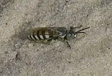- ↑ "Microbembex genus Information". BugGuide.net. Retrieved 2019-09-24.