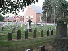 Many of the original settlers of Cumberland County are buried in the Middle Spring Presbyterian Church Cemeteries.[8] Among those buried there are Hugh Brady and Hannah Brady, parents of Major John Brady (whose many exploits on the Pennsylvania frontier are commemorated in a monument in Muncy, Pennsylvania). They are also the grandparents of John's sons, Captain Samuel Brady, of Brady's Leap fame and of Samuel's brother, United States Army Major General Hugh Brady, both of whom attended this church.[9] Their maternal grandparents James and Jeanette Quigley are buried there as well.{ A detailed modern history of Middle Spring Presbyterian Church is available in Paul E. Gill, Ye People of Hopewell: A 250th Anniversary History of the Middle Spring Presbyterian Church,(Shippensburg: 1988).}