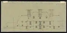 Middlefield was designed for Henry Bond, a lecturer in Roman Law at Trinity College and Trinity Hall, University of Cambridge, and subsequently the Master of Trinity Hall.[1][2] The red-brick house is characterised by a symmetrical frontage, three large chimney blocks, and large tiled hipped roofs with low flanking eaves.[1]
