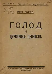 Since March 1922, Galkin took part in the work of the “commission for accounting and concentration of values” headed by Leon Trotsky. On March 11, the Politburo of the Central Committee of the RCP (b) issued a resolution introducing Galkin to the commission for the confiscation of valuables from Moscow churches (“Commission for the confiscation of valuables in the Moscow province”). Since March 20, Galkin was part of the so-called. "Literary Commission" at the Bureau of the Central Scientific and Cultural Center. Galkin, together with Krasikov, on behalf of the “Commission under the Agitation Department of the Central Committee on the issue of leaflets and brochures on the campaign for the confiscation of church valuables,” participated in the work of the “editorial troika.” In the spring and summer of 1922, the GPU attracted Galkin “as a consultant” to the process of preparing and organizing a schism in the ranks of the Orthodox Church. On May 18, the leadership of the GPU sent a letter to Trotsky with a request to allow the use of Galkin “as a consultant on spiritual affairs.” On May 29, the Organizing Bureau of the Central Committee of the RCP (b), having heard the question “About the work of Comrade Gorev-Galkin,” decided: “Do not object to combining the work of Comrade Gorev-Galkin with Comrade Trotsky with work in the SO (Secret Department) of the GPU as consultant on clergy affairs." The head of the VI department of the GPU SO, Evgeniy Tuchkov, in a report on July 24 addressed to the head of the GPU SO, Timofey Samsonov, mentioned that the renovationist Higher Church Administration for the Affairs of the Orthodox Russian Church acts in accordance with Galkin's directives. From June to November 1922, a newspaper was published (and until September, a magazine of the same name) under the general title “ Science and Religion ,” of which Galkin was the executive editor; these publications were supposed to contribute to causing a split in the ranks of the Orthodox clergy. From the beginning of the 1920s, Galkin was one of the party workers included in the nomenklatura register of the Central Committee of the RCP (b). Until 1926, Mikhail Galkin-Gorin conducted active propaganda work in the “ Atheist ” system; until June 1926, he served as deputy chairman of the executive bureau of the Central Council of the Union of Militant Atheists of the USSR, receiving high praise from the leadership. However, from the autumn of 1925 to the spring of 1926, Galkin became embroiled in a conflict within the leadership of the Union of Militant Atheists. In April 1926, Gorev (Galkin) wrote a letter of resignation. The Executive Bureau of the Central Council of the Security Council at a meeting on April 1, 1926, under pressure from Emelyan Yaroslavsky, decided: “to relieve Comrade Gorev from the duties of Deputy [m]. Prev. Executive Bureau and in general from any regular work in the Central Council of the S.B. USSR.” After this, Gorev tried to find support from the leadership of the Bolshevik Party, but to no avail.
