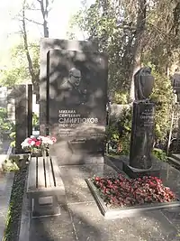 He is buried in Novodevichy Cemetery (3rd section, 1st row).