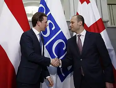 Austrian Foreign Minister Sebastian Kurz in his capacity as OSCE Chairman meets Foreign Minister of Georgia Mikheil Janelidze in Tbilisi.