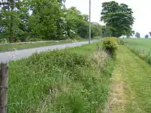 ![]() The line of Hadrian's Wall (beneath the modern road) just to the west of Milecastle 19 | |