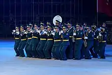 The Exemplary Band of the National Guard of the Republic of Kazakhstan is a public duties unit that carries out activities on behalf of the National Guard of Kazakhstan and formerly the Internal Troops of Kazakhstan. The band wears a dark and light blue full dress uniform.