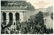 - 1 2 3 4 5 Burachovic, Stanislav (2001). Karlovy Vary Step by Step: A Walk through the Spa Town (3rd ed.). Karlovy Vary: Vydavatelství Promenáda v. o. s. p. 11–12. ISBN 80-86092-32-1.