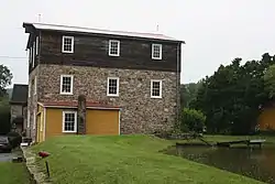 This historic complex consists of a three-story, stone-and-frame, banked mill with corrugated steel gable roof (1887), a 2+1⁄2-story, stone-and-frame, farmhouse (c. 1745), a 2+1⁄2-story, stone settler's cabin that dates to the eighteenth century, a one-story, frame, summer kitchen, a one-story, frame, ice house, a one-story, frame, wagon shed, a two-story, stone-and-frame barn (1814), a one seat privy, a stone-and-frame pig sty, and the millraces and pond. The mill ceased operation in 1965. The custom mill was built as part of a working farm.[2]