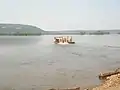 The Millersburg Ferry as viewed from the eastern shore. Note the ferry wall to the downstream side of the boat, midway across the river.