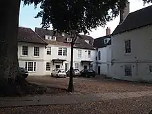 The complex consists of four houses, on three sides of a courtyard: number 1 in the north-west wing, numbers 2 and 2A in the north-east range, and number 3 in the south-east wing. There was formerly a fourth range, almost surrounding the courtyard, but that was demolished in the 1820s.[1][2]