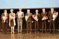 Hermaszewski was set to try his hand at politics once more as a candidate for the European Parliament, again from the SLD party, in the 2014 elections. Ultimately he decided not to take part, as his son-in-law was also running for office but via an opposing political party.[28] In 2018, the conservative ruling Law and Justice party of Poland—mirroring similar efforts from 2007[29]—tried to vote through a law that would collectively demote all former members of the aforementioned WRON from the early 1980s to the lowest rank of private, including Hermaszewski. The so-called "degradation act" was met with controversy in Polish and foreign media primarily due to the case of Hermaszewski, who was initially included as a member of the WRON without his consent or knowledge.[30][31][32] In the end, the proposed law was vetoed by President Andrzej Duda, who used Hermaszewski's case as one of the reasons why the "degradation act" needs to be rewritten.[33]
