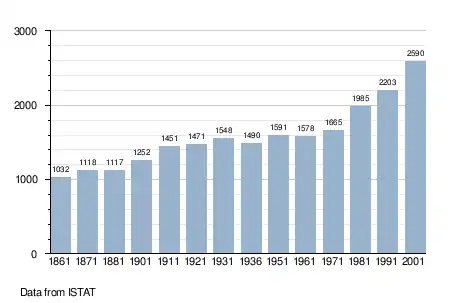 - ↑ "Popolazione Residente al 1° Gennaio 2018". Italian National Institute of Statistics. Retrieved 16 March 2019.