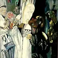 "The Rape of Europa", "Leda and the Swan, "Little red riding-hood", "Tomcats", "Woman on Horse", "Hunting Lions", and the biblical themes, especially "Peter and the Rooster", and even the renowned tragic composition "Pieta. To the victims of war" are understood in a new interpretation (but in no way a repetition) in the harmony of contrasts, and not as a confrontation between them using various styles.