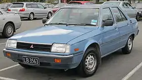 The Mitsubishi Tredia is a subcompact sedan built by Mitsubishi Motors from 1982 to 1990. Its name is supposedly derived from Mitsubishi's "Three Diamonds" logo. Alongside the Cordia and Starion, it was one of the first cars imported and sold to America (and Panama) by the company without the involvement of its then partner, the Chrysler Corporation.[1] In Japan, it was sold at a specific retail chain called Car Plaza.