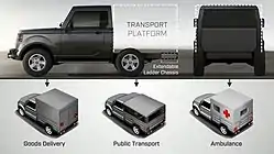 Mobius Motors has announced plans to diversify the utility of its vehicles by including an extendable ladder chassis to make it possible for their vehicles to be used for functions such as goods delivery, public transport, and ambulances.[9] The next-generation Mobius II will be the first vehicle featuring this improvement. The company has also expressed interest in hybrid and electric cars in the future.